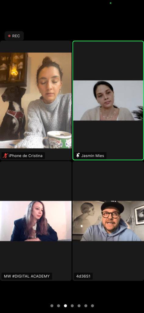 Das Gespräch mit dem Modefotograf, Hairstylist und Inhaber der bekannten Zeitschrift Tush Magazine, Armin Morbach, hat mir besonders gut gefallen. Wir hatten alle die Möglichkeit, ihm Fragen zum Thema Haare, Instagram und der Modelbranche zu stellen, und haben natürlich unsere Chance genutzt. Ich persönlich überlegte schon länger, meine Haare total zu verändern, und wollte den Lockdown eigentlich dafür nutzen, meine Haare Strawberry Blond zu färben, nur der fehlende Mut hat mich bisher zurückgehalten. Armin hat im persönlichen Gespräch aber betont, dass mein lateinamerikanischer Look gerade sehr gefragt ist, Stichwort „Diversity“, und ich bei meinen Naturlocken und Naturhaarfarbe braun bleiben sollte. Dennoch fügte er augenzwinkernd hinzu, wenn man richtig berühmt ist, kann man aber ausprobieren, was man will.